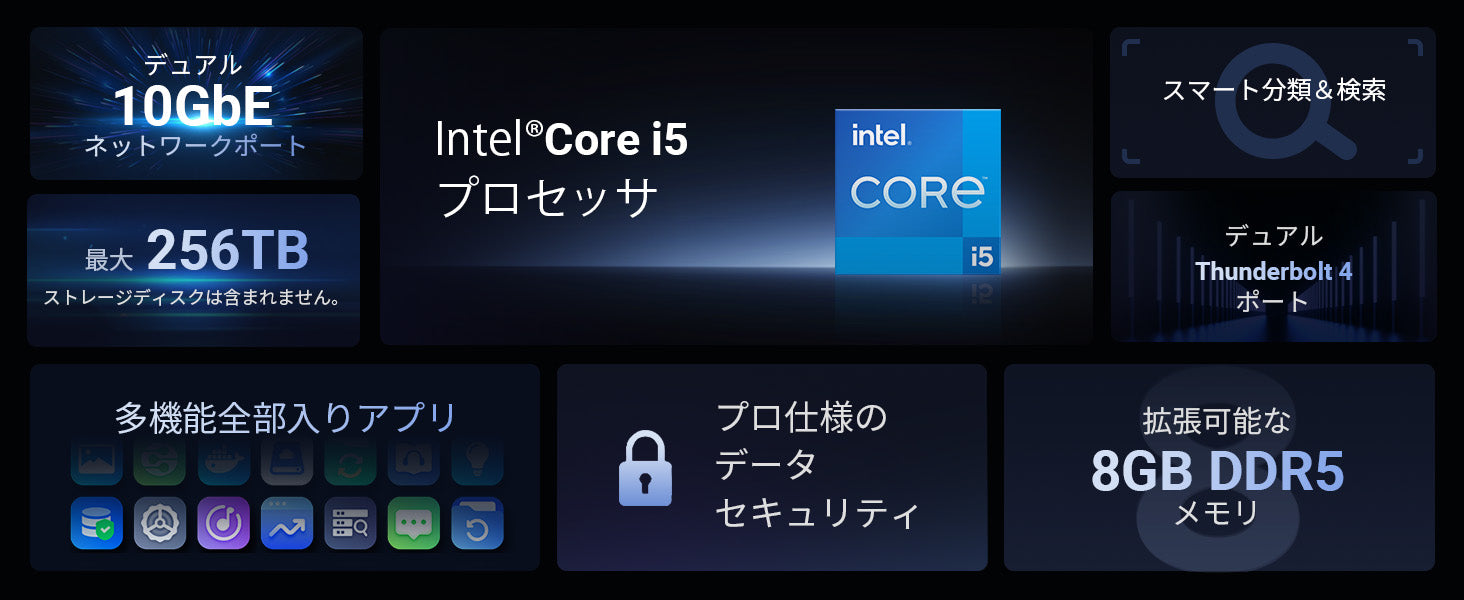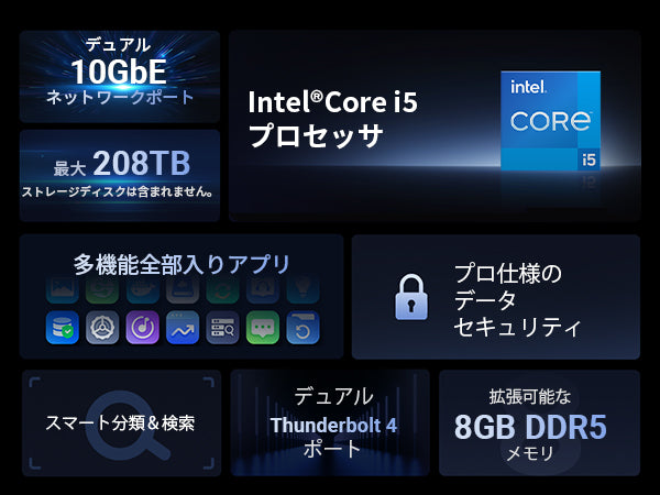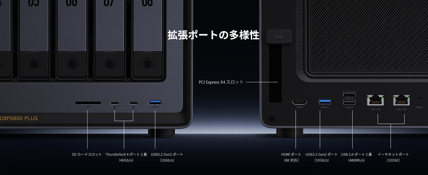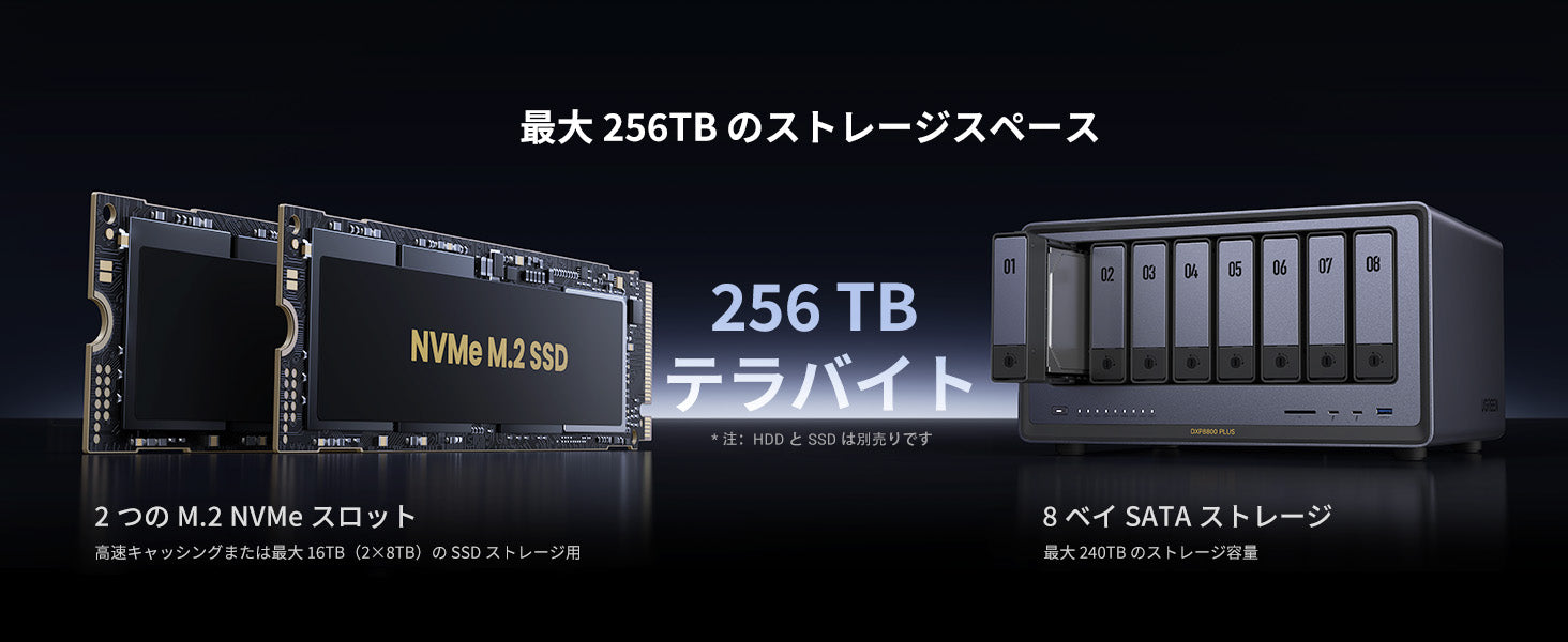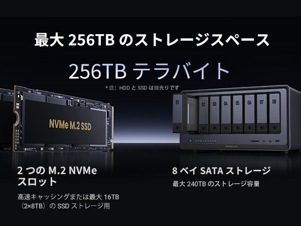 | 最大ストレージ容量 | 256TB (8x 30TB + 2x 8TB) |