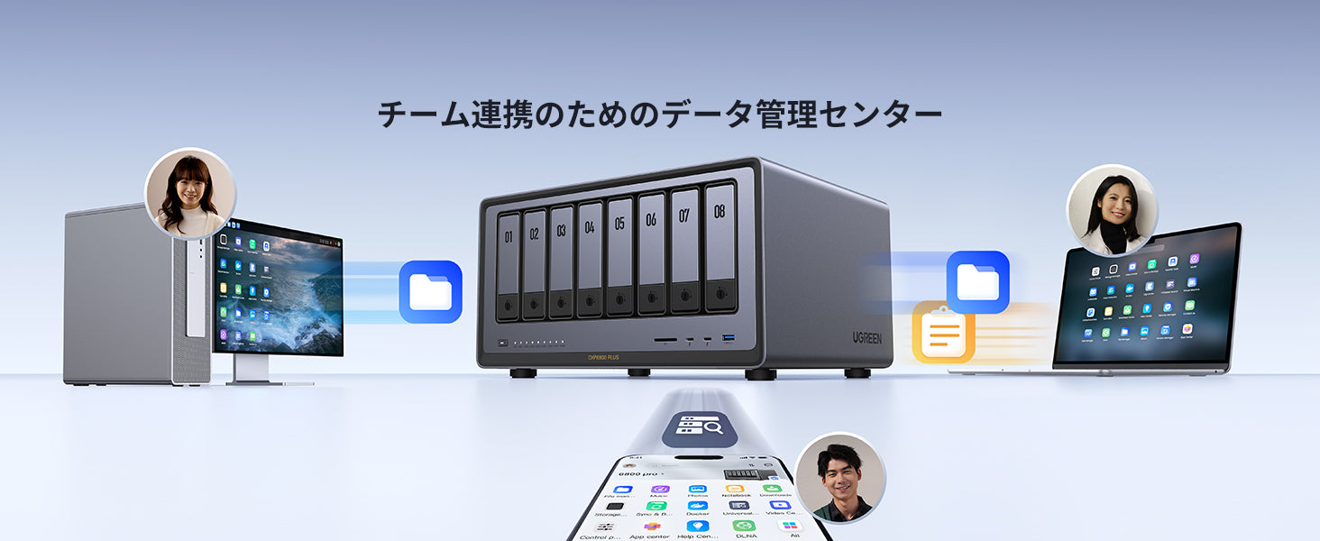 予期せぬデータ損失からユーザーのデータを守ります。バックアップデータは、UGREEN NAS本体、ファイルサーバー、パソコン、モバイルデバイスなどに保存可能です。
