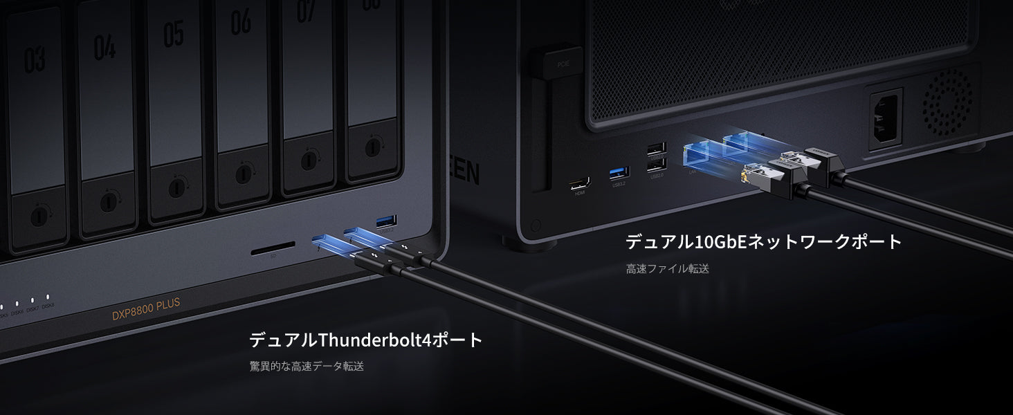2つの10GbE高速ネットワークポートは、最大2500MB/秒のダウンロード速度で20G帯域幅に集約することができます。大容量ファイルをスムーズに転送できます。