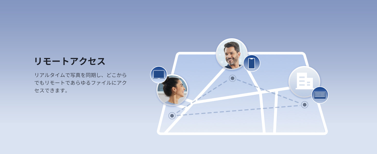 増分バックアップや重複排除技術を活用することで、バックアップ時間とストレージ使用量を削減します。また、NAS・PC・ファイルサーバー間でのデータ同期に対応し、複数デバイス間でのデータの一貫性を確保します。